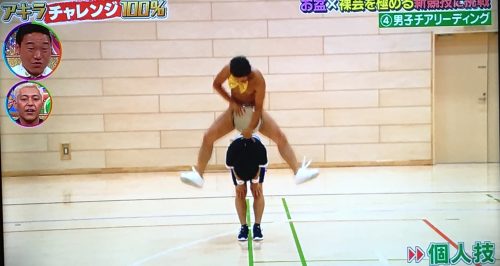 アキラは開脚、回転、お尻バウンドを取り入れた