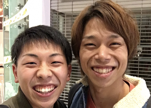 後に続いて後輩が『いらっしゃいませ!   みっ!!』と
