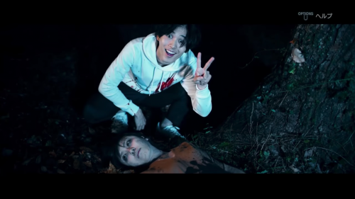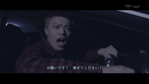映像は、八木が急いで山道を車で運転している。