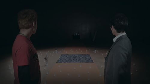 部屋に入ると、ランタンの仮面は部屋に佇み