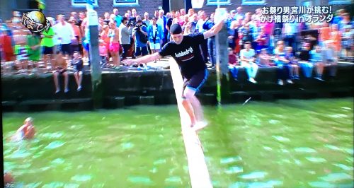 なんとか石鹸なしの丸太は渡りきり記録は18メートル!!