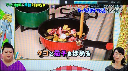 先ほど炒めたタコとナスをペペロンチーノソースと