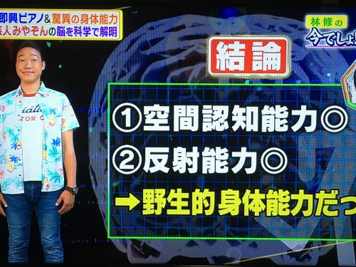 検証結果としてみやぞんは空間認識能力、反射能力が