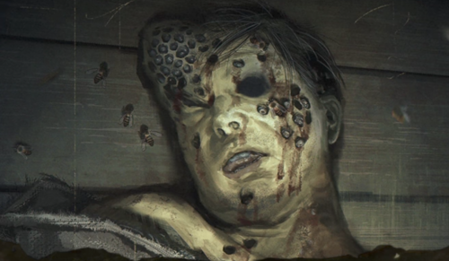 また調査していくと無数の穴の空いた死体が吊り下げられ