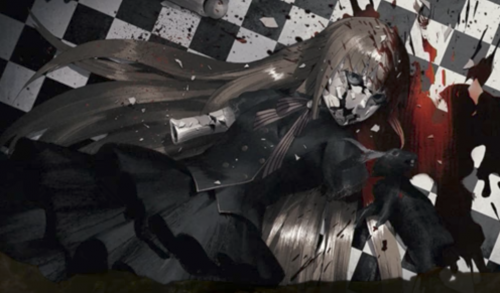 ホールに戻ると破壊されたメリイと黒ウサギが