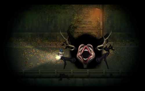 懐中電灯をつけると、大きなお化けが襲いかかってきます。