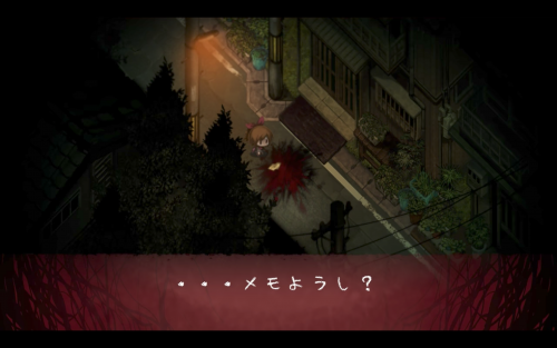 さらに先へ行くと、血溜まりの中にメモ用紙が落ちているのを発見。