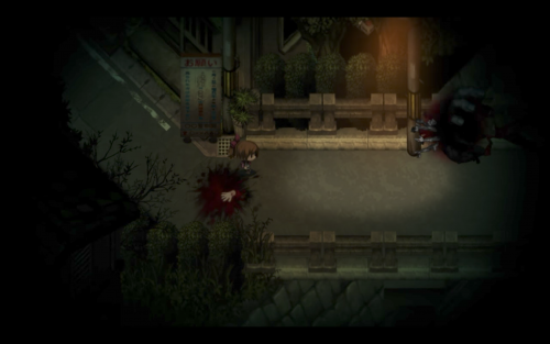すぐに看板に隠れ、お化けをやり過ごすユイですが