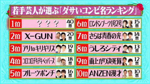 そこそこ名の売れたコンビがランキング入りするんですかね。